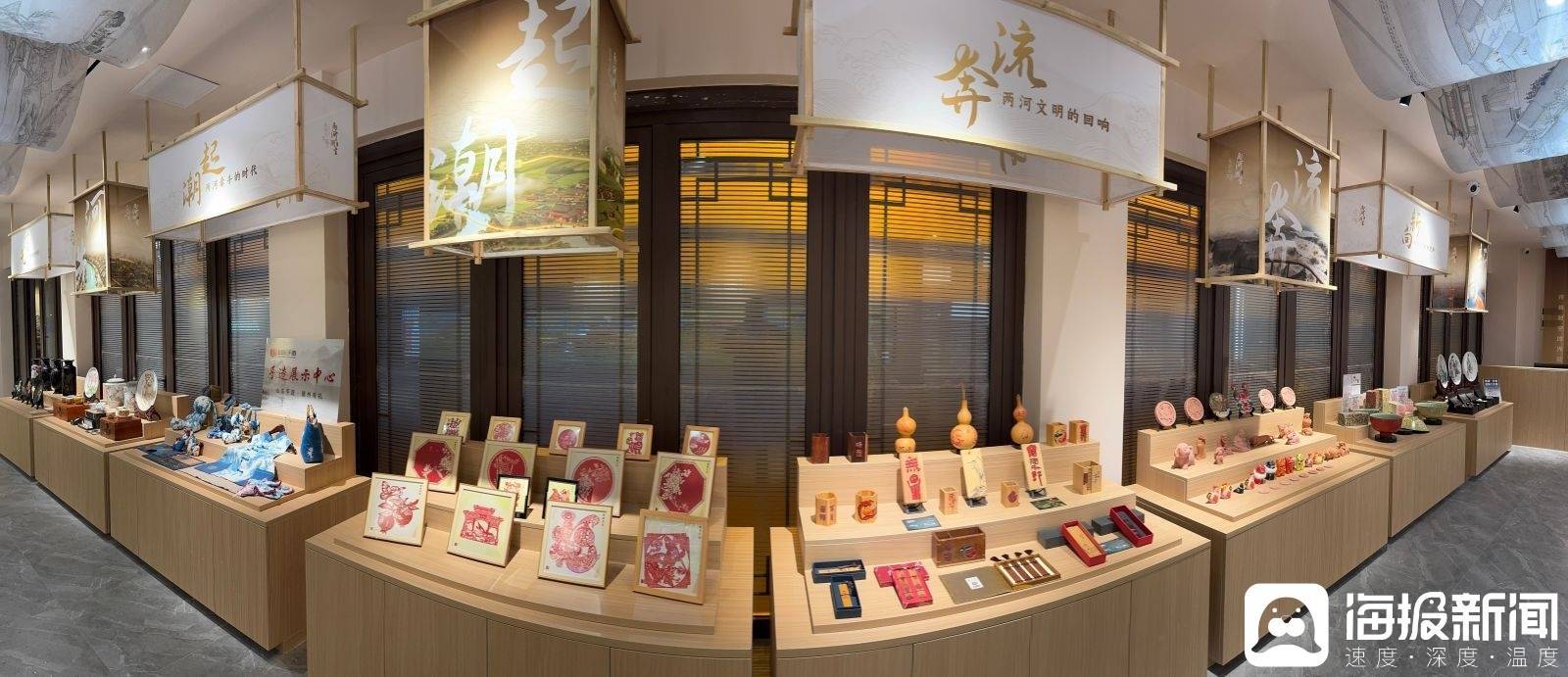 VR体验的火爆,也带火了场馆内的文创销售区。在A馆一楼的“文创雅会”区域,德州特产雪柜贴、运河主题册本、方位特产礼盒以及“两河潮生”主题文创居品,诱骗了大批旅客安身选购。