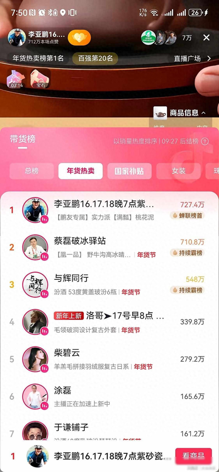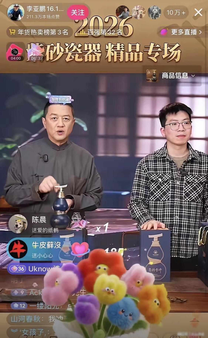 那天晚上十点多,李亚鹏的直播间里还有五万多东说念主待着,最多的时候东说念主数冲到十万,排在带货榜第又名,连董宇辉和蔡磊齐被他跨越了,可他莫得喊“快抢”“终末三件”,仅仅迟缓先容几款茶具,价钱从六百多到三千块开云体育,每款只卖十几件,一上架就坐窝卖光,不雅众不是真的来买东西的,许多东说念主便是蹲着看,一边刷礼物、发弹幕,图个淆乱。