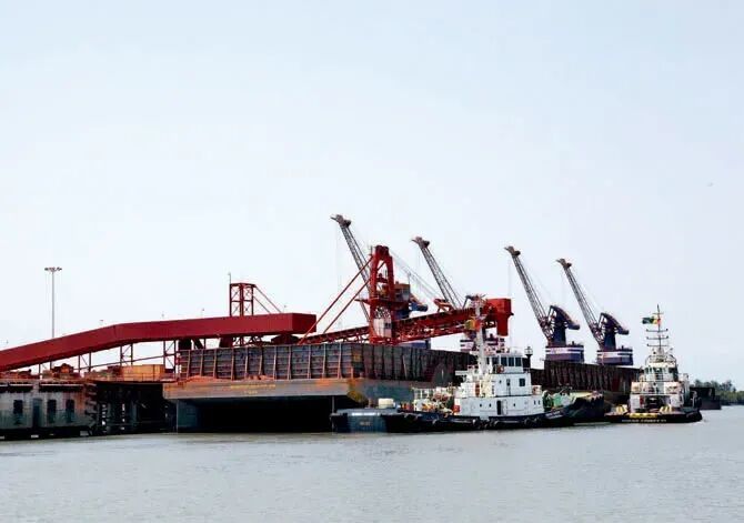 20万吨级的巨轮长年穿梭于大欧好意思、好望角、印度洋,将几内亚的红色铝土矿运往滨州套尔河港。