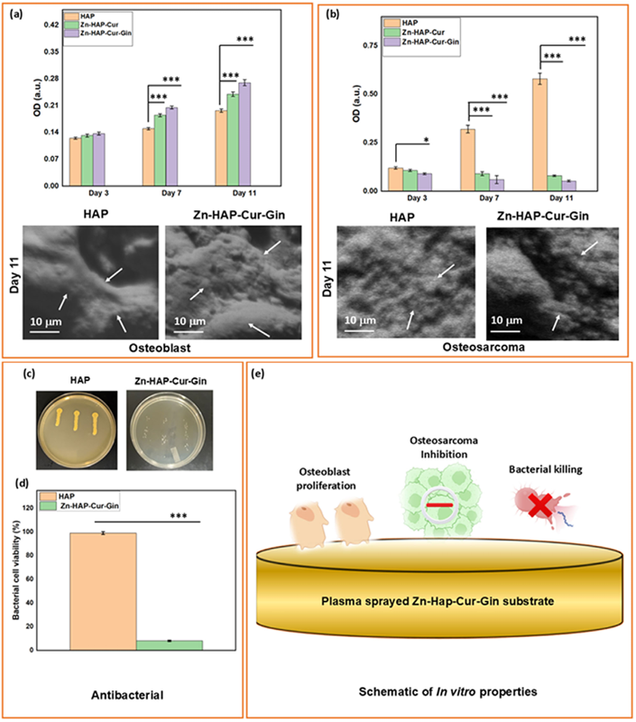 在植入物名义,MG-63 骨赘瘤细胞的存活率着落了 11 倍。这意味着该涂层可能在建树骨缺损的同期,扼制残余癌细胞的滋长。