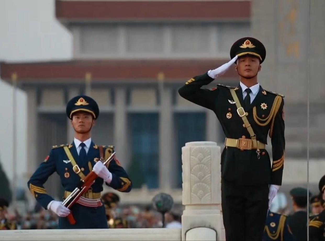 夜幕来临,华灯初上。操心堂前的礼兵在灯光下化作正经的剪影,与天安门城楼、东说念主民强者操心碑共同组成共和国的天空线。